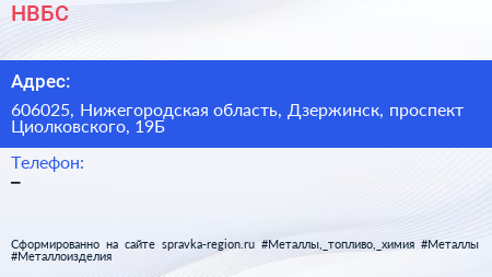 НВБС по адресу 606025, Нижегородская область, Дзержинск, проспект Циолковского, 19Б в дальнейшем Организация, размещена в следующих категориях: