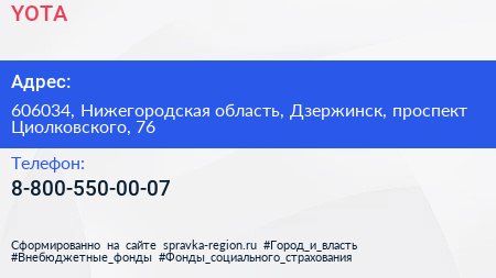 YOTA по адресу 606034, Нижегородская область, Дзержинск, проспект Циолковского, 76 в дальнейшем Организация, размещена в следующих категориях: