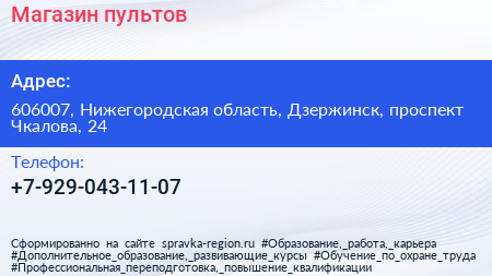 Магазин пультов по адресу 606007, Нижегородская область, Дзержинск, проспект Чкалова, 24 в дальнейшем Организация, размещена в следующих категориях: