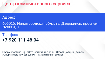 Центр компьютерного сервиса по адресу 606015, Нижегородская область, Дзержинск, проспект Ленина, 1 в дальнейшем Организация, размещена в следующих категориях: