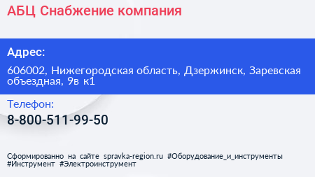 АБЦ Снабжение, компания по адресу 606002, Нижегородская область, Дзержинск, Заревская объездная, 9в к1 в дальнейшем Организация, размещена в следующих категориях: