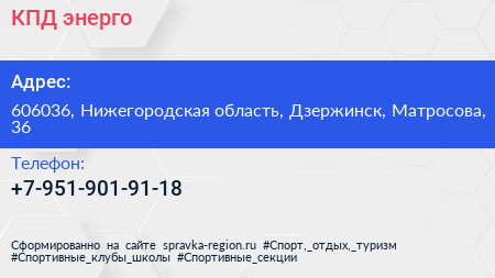 КПД-энерго по адресу 606036, Нижегородская область, Дзержинск, Матросова, 36 в дальнейшем Организация, размещена в следующих категориях: