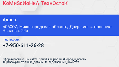КоМиSсИоНкА ТехнОстоК по адресу 606007, Нижегородская область, Дзержинск, проспект Чкалова, 24а в дальнейшем Организация, размещена в следующих категориях: