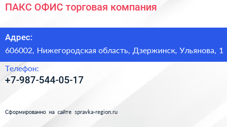 ПАКС-ОФИС, торговая компания по адресу 606002, Нижегородская область, Дзержинск, Ульянова, 1 в дальнейшем Организация, размещена в следующих категориях: