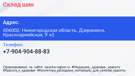 Склад шин по адресу 606002, Нижегородская область, Дзержинск, Красноармейская, 9 к1 в дальнейшем Организация, размещена в следующих категориях: