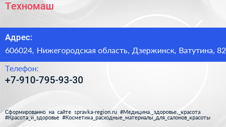 Техномаш по адресу 606024, Нижегородская область, Дзержинск, Ватутина, 82 в дальнейшем Организация, размещена в следующих категориях: