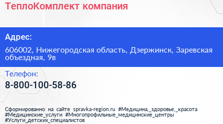 ТеплоКомплект, компания по адресу 606002, Нижегородская область, Дзержинск, Заревская объездная, 9в в дальнейшем Организация, размещена в следующих категориях: