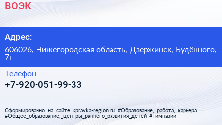 ВОЭК по адресу 606026, Нижегородская область, Дзержинск, Будённого, 7г в дальнейшем Организация, размещена в следующих категориях: