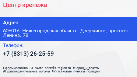 Центр крепежа по адресу 606016, Нижегородская область, Дзержинск, проспект Ленина, 78 в дальнейшем Организация, размещена в следующих категориях:
