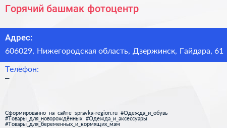 Горячий башмак, фотоцентр по адресу 606029, Нижегородская область, Дзержинск, Гайдара, 61 в дальнейшем Организация, размещена в следующих категориях:
