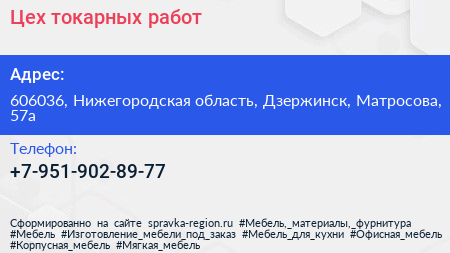 Цех токарных работ по адресу 606036, Нижегородская область, Дзержинск, Матросова, 57а в дальнейшем Организация, размещена в следующих категориях: