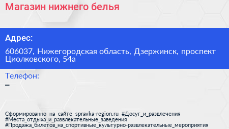 Магазин нижнего белья по адресу 606037, Нижегородская область, Дзержинск, проспект Циолковского, 54а в дальнейшем Организация, размещена в следующих категориях: