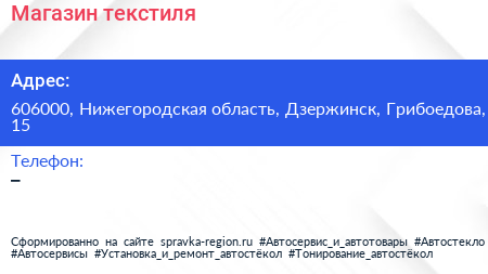Магазин текстиля по адресу 606000, Нижегородская область, Дзержинск, Грибоедова, 15 в дальнейшем Организация, размещена в следующих категориях:
