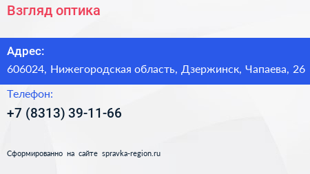 Взгляд, оптика по адресу 606024, Нижегородская область, Дзержинск, Чапаева, 26 в дальнейшем Организация, размещена в следующих категориях:
