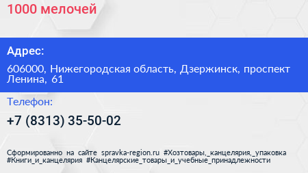 1000 мелочей по адресу 606000, Нижегородская область, Дзержинск, проспект Ленина, 61 в дальнейшем Организация, размещена в следующих категориях: