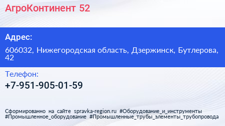 АгроКонтинент-52 по адресу 606032, Нижегородская область, Дзержинск, Бутлерова, 42 в дальнейшем Организация, размещена в следующих категориях: