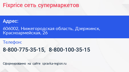 Fixprice, сеть супермаркетов по адресу 606002, Нижегородская область, Дзержинск, Красноармейская, 26 в дальнейшем Организация, размещена в следующих категориях: