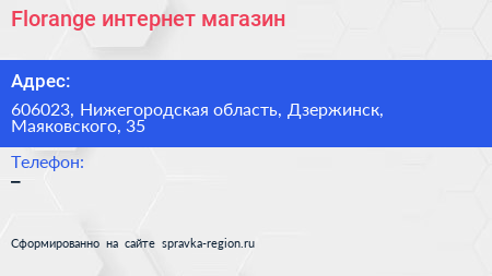 Florange, интернет-магазин по адресу 606023, Нижегородская область, Дзержинск, Маяковского, 35 в дальнейшем Организация, размещена в следующих категориях: