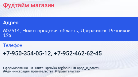 Фудтайм, магазин по адресу 607614, Нижегородская область, Дзержинск, Речников, 19а в дальнейшем Организация, размещена в следующих категориях: