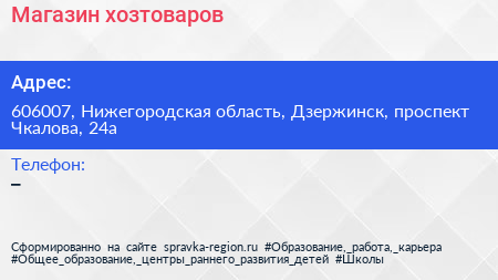 Магазин хозтоваров по адресу 606007, Нижегородская область, Дзержинск, проспект Чкалова, 24а в дальнейшем Организация, размещена в следующих категориях: