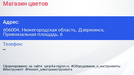Магазин цветов по адресу 606004, Нижегородская область, Дзержинск, Привокзальная площадь, 6 в дальнейшем Организация, размещена в следующих категориях: