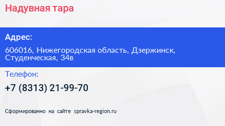 Надувная тара по адресу 606016, Нижегородская область, Дзержинск, Студенческая, 34в в дальнейшем Организация, размещена в следующих категориях: