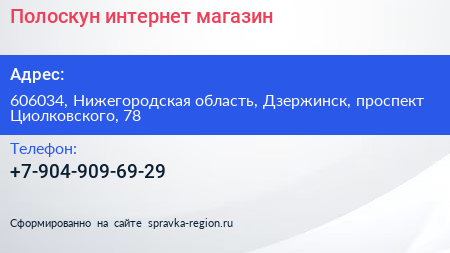 Полоскун, интернет-магазин по адресу 606034, Нижегородская область, Дзержинск, проспект Циолковского, 78 в дальнейшем Организация, размещена в следующих категориях: