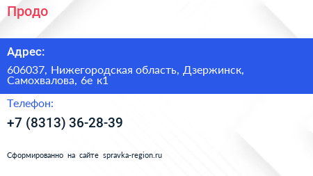 Продо по адресу 606037, Нижегородская область, Дзержинск, Самохвалова, 6е к1 в дальнейшем Организация, размещена в следующих категориях: