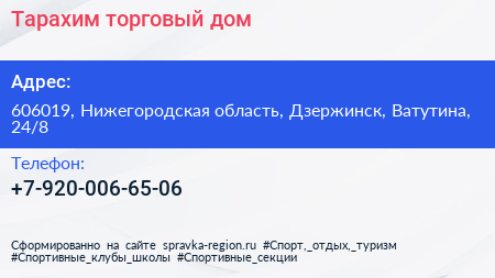 Тарахим, торговый дом по адресу 606019, Нижегородская область, Дзержинск, Ватутина, 24/8 в дальнейшем Организация, размещена в следующих категориях:
