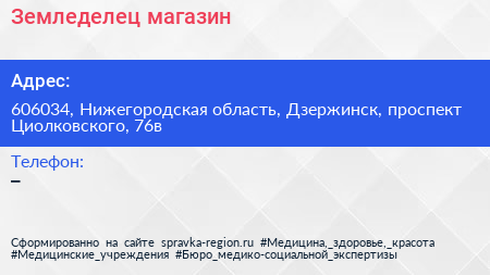 Земледелец, магазин по адресу 606034, Нижегородская область, Дзержинск, проспект Циолковского, 76в в дальнейшем Организация, размещена в следующих категориях: