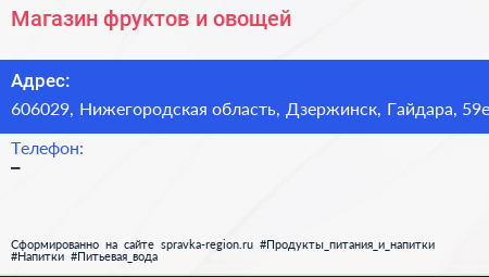 Магазин фруктов и овощей по адресу 606029, Нижегородская область, Дзержинск, Гайдара, 59е в дальнейшем Организация, размещена в следующих категориях: