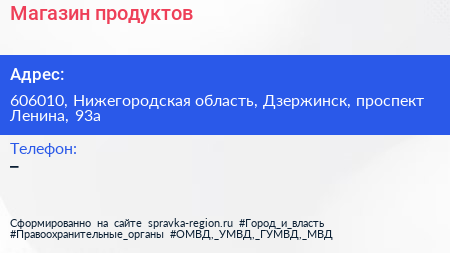 Магазин продуктов по адресу 606010, Нижегородская область, Дзержинск, проспект Ленина, 93а в дальнейшем Организация, размещена в следующих категориях: