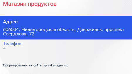 Магазин продуктов по адресу 606034, Нижегородская область, Дзержинск, проспект Свердлова, 72 в дальнейшем Организация, размещена в следующих категориях: