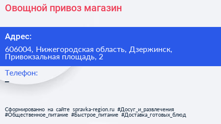 Овощной привоз, магазин по адресу 606004, Нижегородская область, Дзержинск, Привокзальная площадь, 2 в дальнейшем Организация, размещена в следующих категориях: