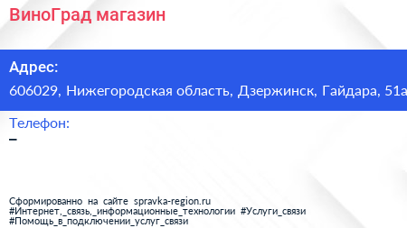 ВиноГрад, магазин по адресу 606029, Нижегородская область, Дзержинск, Гайдара, 51а в дальнейшем Организация, размещена в следующих категориях: