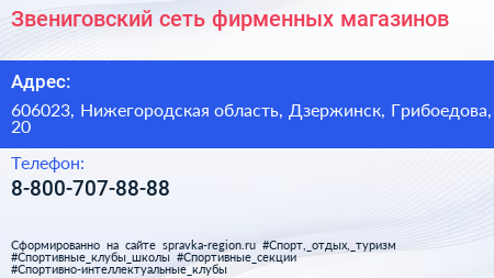 Звениговский, сеть фирменных магазинов по адресу 606023, Нижегородская область, Дзержинск, Грибоедова, 20 в дальнейшем Организация, размещена в следующих категориях: