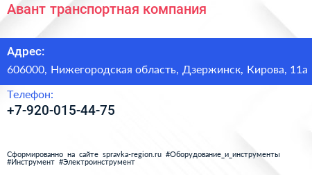 Авант, транспортная компания по адресу 606000, Нижегородская область, Дзержинск, Кирова, 11а в дальнейшем Организация, размещена в следующих категориях: