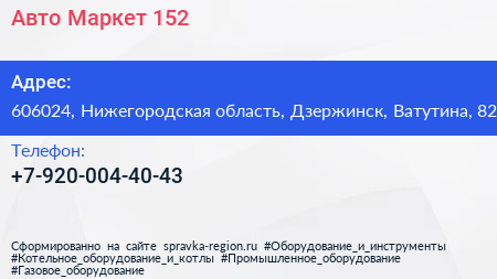 Авто Маркет 152 по адресу 606024, Нижегородская область, Дзержинск, Ватутина, 82 в дальнейшем Организация, размещена в следующих категориях:
