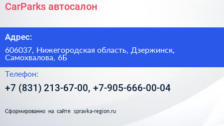 CarParks, автосалон по адресу 606037, Нижегородская область, Дзержинск, Самохвалова, 6Б в дальнейшем Организация, размещена в следующих категориях: