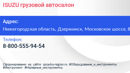 ISUZU, грузовой автосалон по адресу Нижегородская область, Дзержинск, Московское шоссе, 8 в дальнейшем Организация, размещена в следующих категориях: