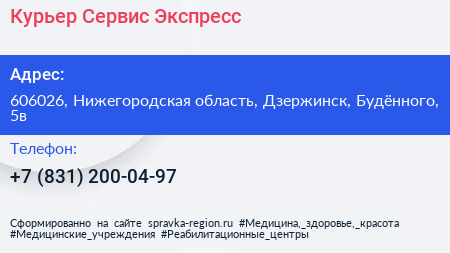 Курьер Сервис Экспресс по адресу 606026, Нижегородская область, Дзержинск, Будённого, 5в в дальнейшем Организация, размещена в следующих категориях: