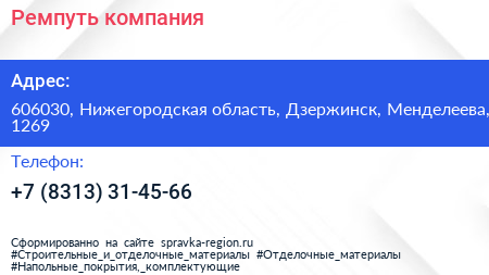 Ремпуть, компания по адресу 606030, Нижегородская область, Дзержинск, Менделеева, 1269 в дальнейшем Организация, размещена в следующих категориях: