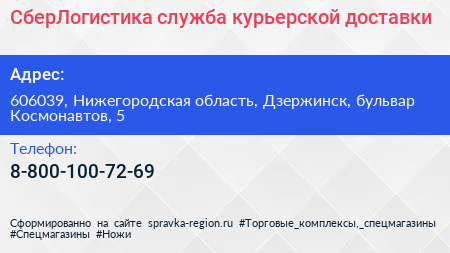 СберЛогистика, служба курьерской доставки по адресу 606039, Нижегородская область, Дзержинск, бульвар Космонавтов, 5 в дальнейшем Организация, размещена в следующих категориях: