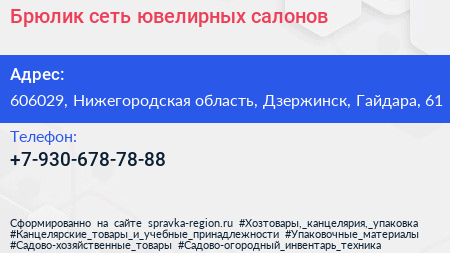 Брюлик, сеть ювелирных салонов по адресу 606029, Нижегородская область, Дзержинск, Гайдара, 61 в дальнейшем Организация, размещена в следующих категориях: