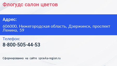 Флогудс, салон цветов по адресу 606000, Нижегородская область, Дзержинск, проспект Ленина, 59 в дальнейшем Организация, размещена в следующих категориях:
