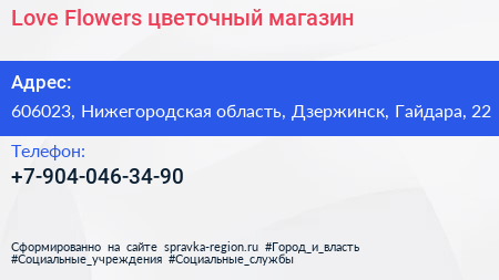 Love Flowers, цветочный магазин по адресу 606023, Нижегородская область, Дзержинск, Гайдара, 22 в дальнейшем Организация, размещена в следующих категориях: