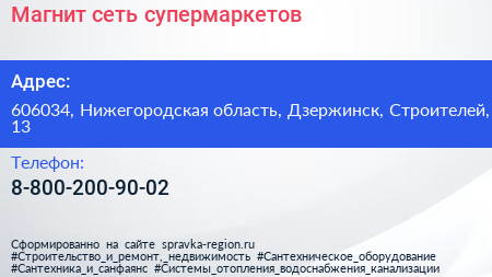 Магнит, сеть супермаркетов по адресу 606034, Нижегородская область, Дзержинск, Строителей, 13 в дальнейшем Организация, размещена в следующих категориях: