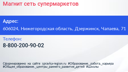 Магнит, сеть супермаркетов по адресу 606024, Нижегородская область, Дзержинск, Чапаева, 71 в дальнейшем Организация, размещена в следующих категориях: