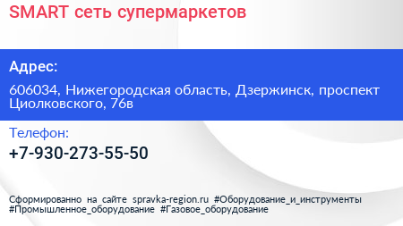 SMART, сеть супермаркетов по адресу 606034, Нижегородская область, Дзержинск, проспект Циолковского, 76в в дальнейшем Организация, размещена в следующих категориях: