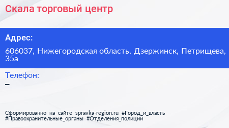 Скала, торговый центр по адресу 606037, Нижегородская область, Дзержинск, Петрищева, 35а в дальнейшем Организация, размещена в следующих категориях: